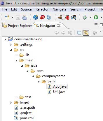 选择项目的路径,即使用 Maven 创建一个项目时的存储路径。假设我们创建了一个项目: consumerBanking. 通过 Maven 构建 Java 项目 查看如何使用 Maven 创建一个项目。